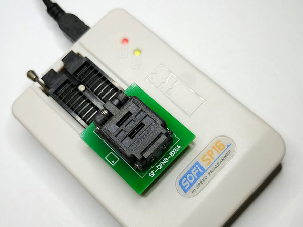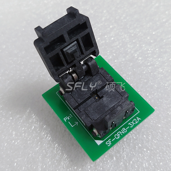 产品用途: 烧录座,编程座、测试座,对USON8/UDFN8/DFN8/QFN8的IC芯片进行烧写、测试。适用于硕飞SP8/SP16/SP20系列编程器及其他各种通用型编程器。 适用封装: USON8/UDFN8/DFN8/QFN8,引脚间距0.5mm,芯片体尺寸(长x宽):3x2mm
