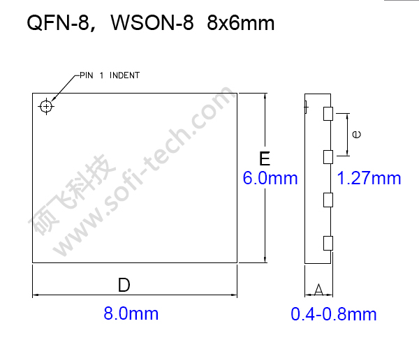 产品用途: 编程座、烧录座,测试座,对WSON8,QFN8的IC芯片进行烧写、测试。适用于硕飞SP8/SP16系列编程器及其他各种通用型编程器。 适用封装: WSON8、QFN8,引脚间距1.27mm,芯片体尺寸(长x宽):8x6mm 测试座型号: 08TN13A18060 测试座品牌: PLASTRONICS