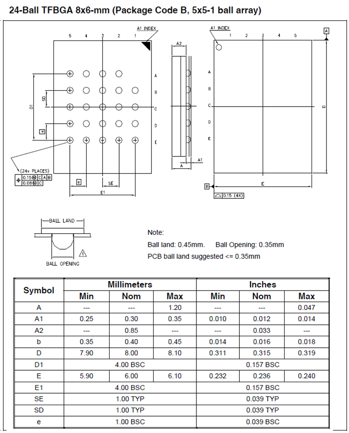 适用芯片封装:(芯片尺寸8x6mm,引脚阵列5x5)
