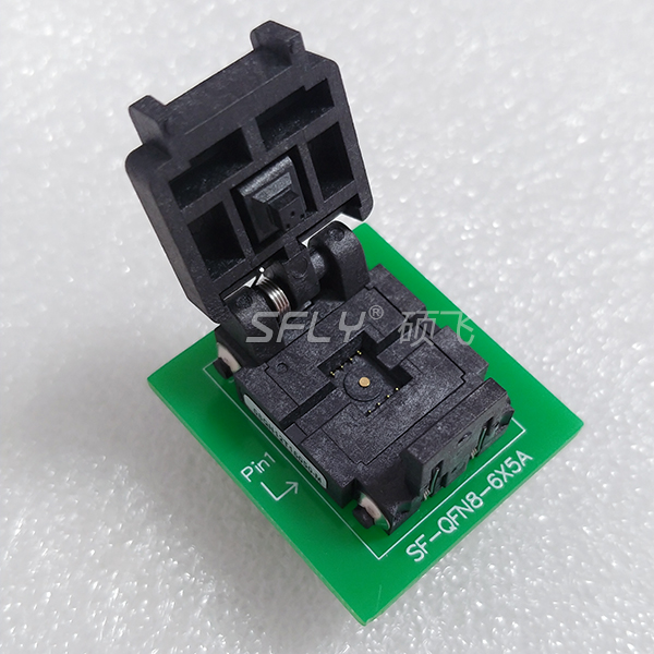 产品用途: 烧录座,编程座、测试座,对WSON8、QFN8的IC芯片进行烧写、测试。适用于硕飞SP8/SP16系列编程器及其他各种通用型编程器。 适用封装: WSON8、QFN8,USON8、引脚间距1.27mm,芯片体尺寸(长x宽):6x5mm 测试座型号: 08QN12T16050 测试座品牌: PLASTRONICS