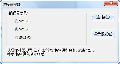 •启动后需要先选择烧录器的型号,并根据需要进入联机或演示模式