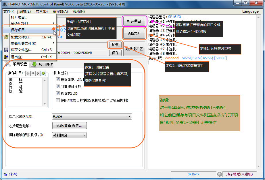 •FlyPRO MCP为硕飞SP16系列编程器的多机控制软件,支持编程器型号:SP16-B/F/FX