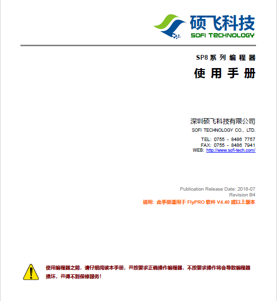 硕飞SP8系列编程器使用说明书(中文版 RevB5 ),PDF格式