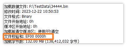 为保证烧录数据的准确性, 我们建议, 当文件小于芯片容量大小, 除了要记录该文件的数据校验和, 还必须记录该文件在指定容量芯片的时的缓冲区校验和.